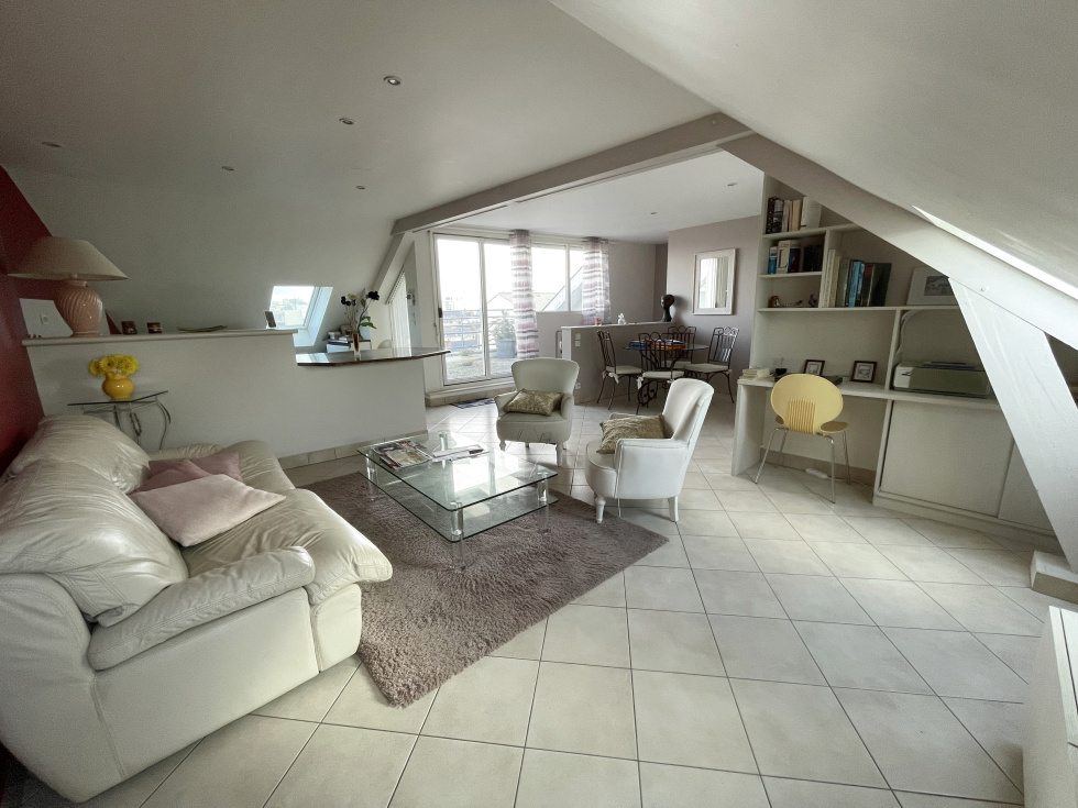 Votre agence Fontaine Immobilier vous propose sur la commune du Mans secteur gare / Palais des congrès (Rue Paul Beldant ). Un appartement au 5ème et dernier étage comprenant : Entrée, cuisine ouverte sur salon, une chambre, salle de bains, wc, chaufferie, cave, garage. Surface totale de l'appartement 87,28 surface Carrez 57,40.