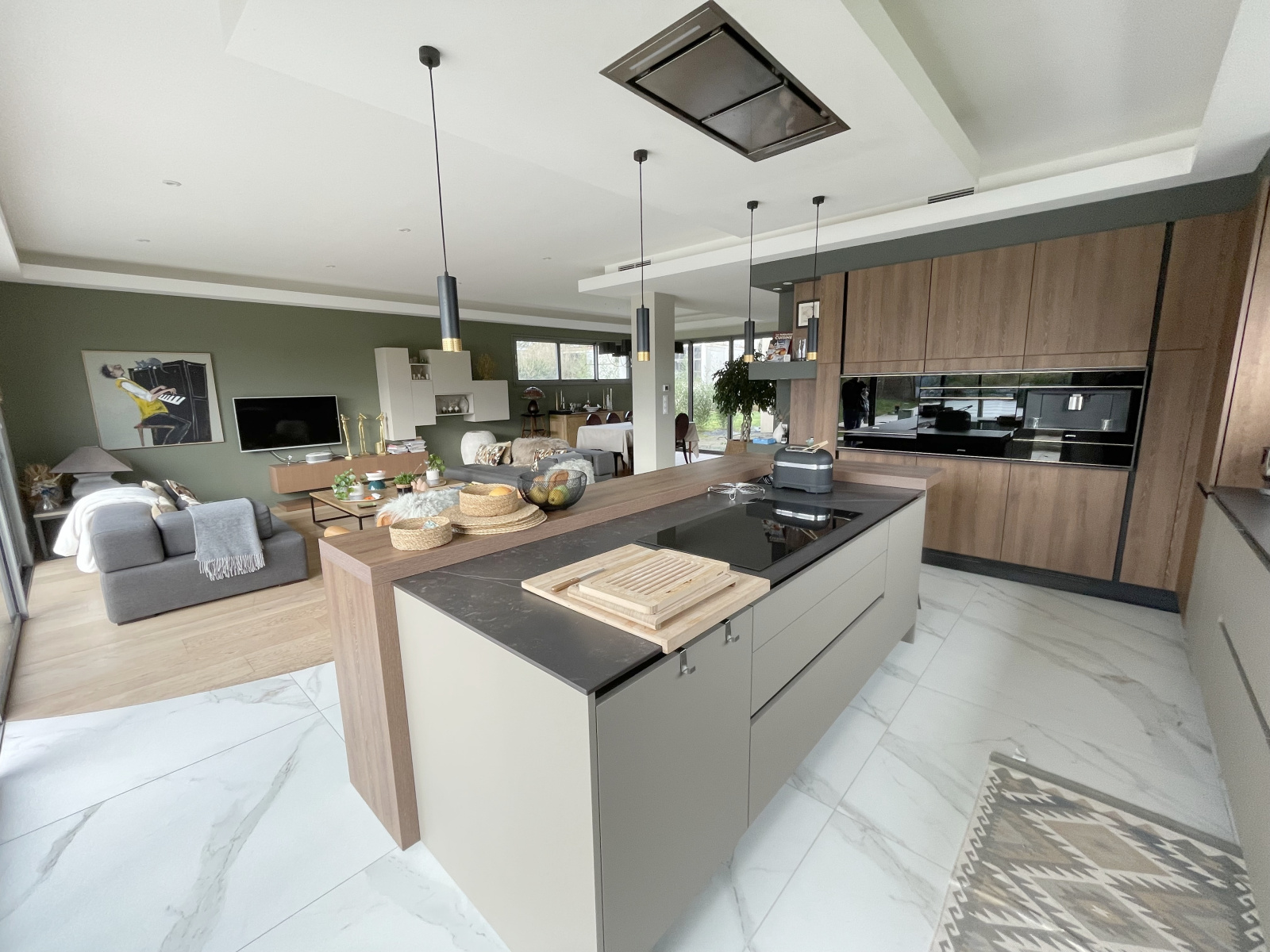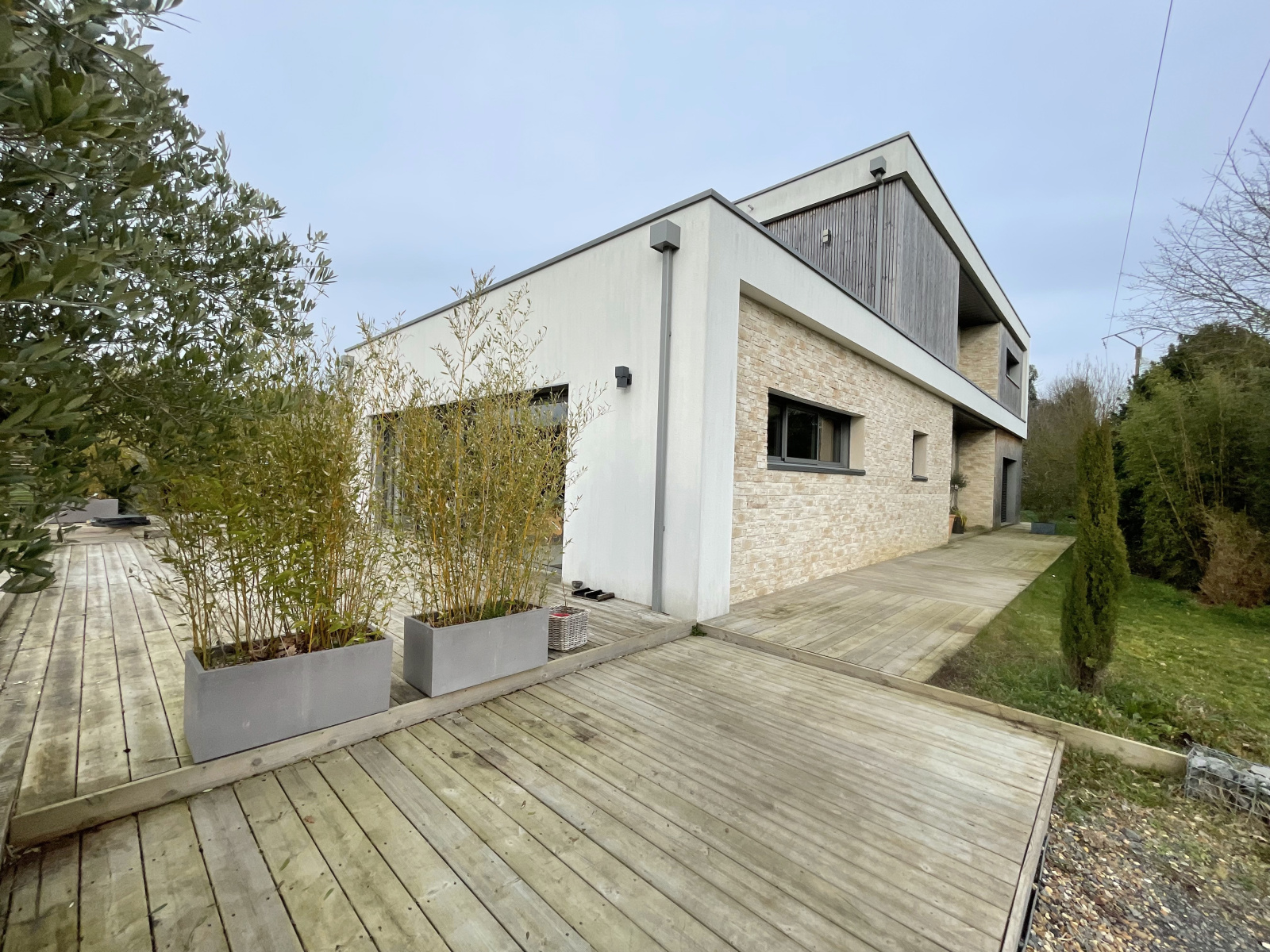 Cette maison exceptionnelle de par son architecture épurée, de ses matériaux de qualité et de ses equipements modernes, est composée au rez-de-chaussée d'une entrée avec placards, d'un salon séjour de plus de 47m2 ouvert sur une cuisine aménagée équipée haut de gamme donnant sur une terrasse en bois, d'une arrière cuisine, d'une spacieuse suite parentale avec sa chambre, sa salle de bain et son dressing, wc.